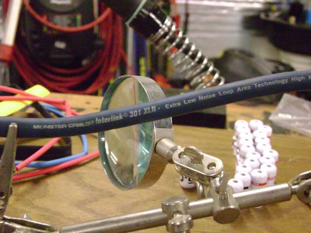 As I move along in my install, i'll be making more of these posts... First off, I gotta say, a lot of people bag on Monster cable for the price.. Well, for me, I got my cable and old ends (not shown) while working a shop back in ~94' and I have been using this particular set of Monster cables ever since.. you will see some really nice build quality from this .... The set-up... Note the Weller 33w iron.. wouldn't solder without it.. And I Ebay'ed the cable ends.. ![]() ![]() Each run is a twisted, shielded, stereo pair.. ![]() Each single conductor, is made up of 4(or 5) twised conductors, made of flat copper, wound around a fiberglass core.. ![]() Pre-tinned cable end (Streetwires ZN5.0 cable ends BTW) ![]() All soldered up... ![]() Complete... ![]() Enjoy.. Aaron
