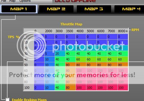 Each map mode has two main sections ***8211; The throttle section and the braking section. The braking section is activated when the foot brake is pressed; otherwise the throttle section is default.